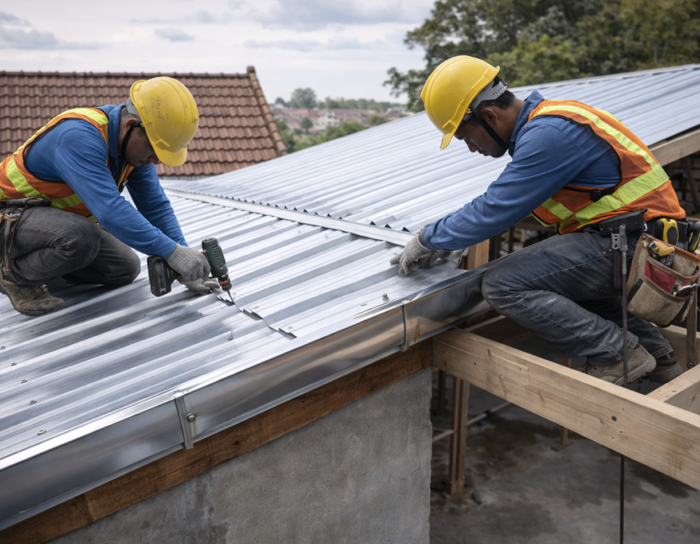 Nossa equipe está apta a construir e realizar a manutenção de telhados com estruturas metálicas ou em madeira, utilizando telhas sanduíche, coloniais ou de fibrocimento, além da execução de rufos e calhas, garantindo vedação, resistência e durabilidade.